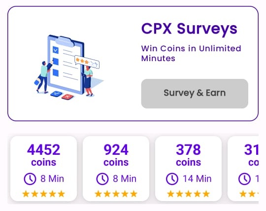 Survays : जहां पर आपको Survey wall भी मिलता है जिसके अंदर आप अलग-अलग तरह के सर्वे को कंप्लीट करके उनके जरिए यहां से कमाई कर सकते हैं उसके अंदर बस आपको किसी भी सर्वर को एक बार शुरू करने के बाद बीच में छोड़ना नहीं है आपके यहां पर जरूर कमाई हो जाएगी