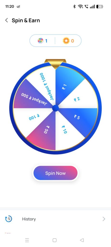 Spin and Earn : जो सबसे पहला तरीका है यहां से कमाई करने का वह है स्पिन करके कमाई करने का आपको बॉटम में एक स्पिन का आइकन मिलता है उसके ऊपर क्लिक करके आप यहां से अच्छी खासी कमाई कर सकते हो आपको बस सिंगल बार क्लिक करना है और जैसे आप क्लिक करोगे आपके सामने स्पिन ओपन हो जाएगा.