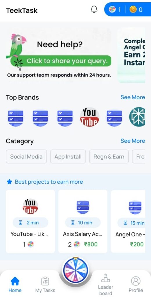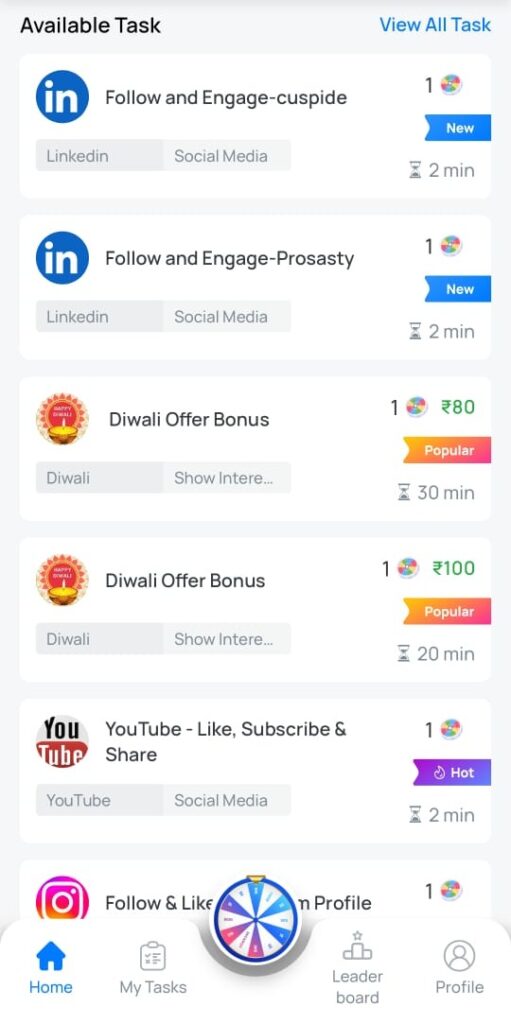 Task : आपके यहां पर टास्क भी मिलते हैंउन टास्क को आप पूरा करके यहां से कमाई कर सकते हो बहुत ही सिंपल है बस चाहिए टास्क को पूरा कीजिए और जितना भी टास्क अमाउंट होगा वह आपके वॉलेट में क्रेडिट कर दिया जाएगा